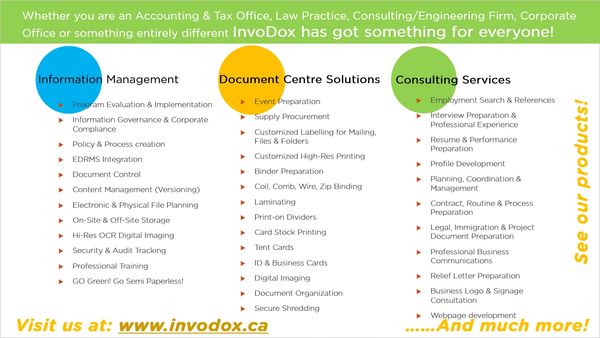 Whether you seek short-term assistance, or ready to complete a long-term project, InvoDox understands our Client needs. We take initiative and advocate document solutions through our broad range of full Paper and Digital document management solutions.